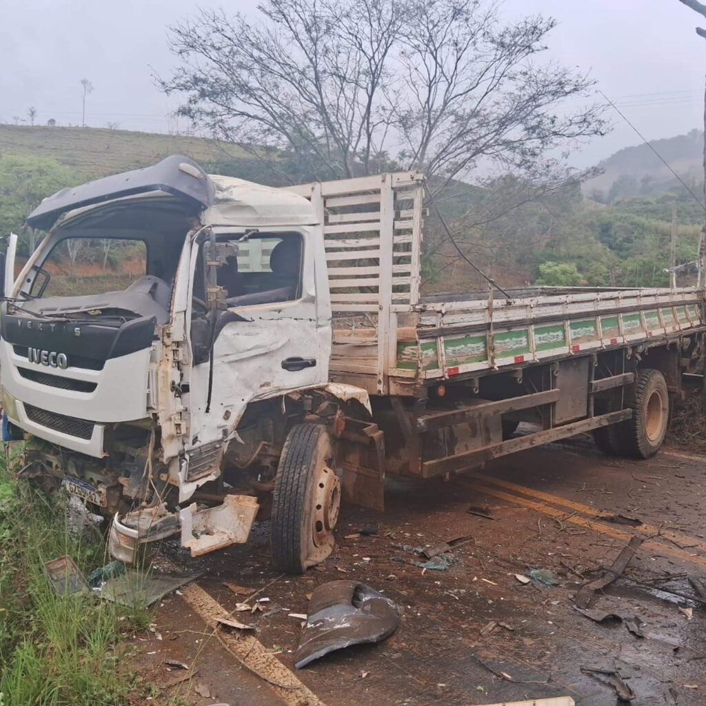 Um acidente envolvendo dois caminhões interditou completamente a BR-482 na manhã desta quinta-feira (25), no trecho entre o distrito de Alvorada e a cidade de Carangola.