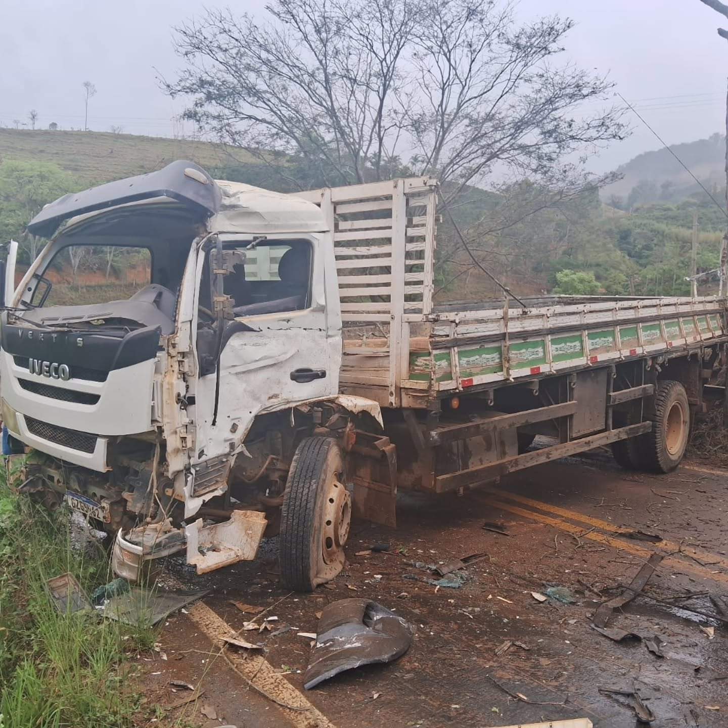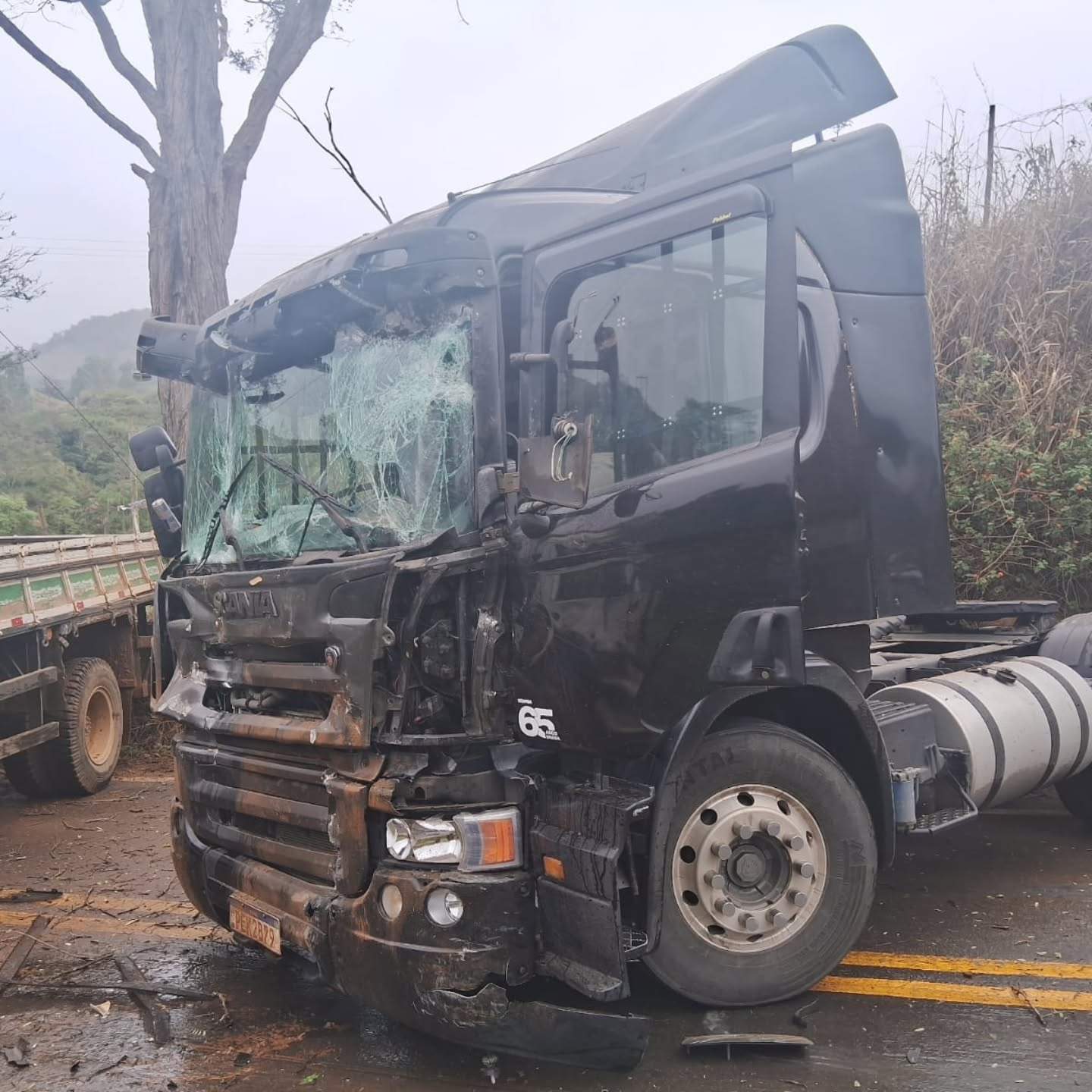 Acidente entre caminhões interdita BR-482 entre Alvorada e Carangola