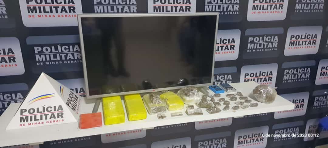 Diante das informações, equipes do Tático Móvel se deslocaram para a averiguação da denúncia e conseguiram localizar a citada casa. Durante buscas no local foram encontrados 05 barras de maconha e 23 porções de tamanhos variados da mesma substância; além de uma televisão; uma máquina de cartão e materiais para a comercialização das drogas.