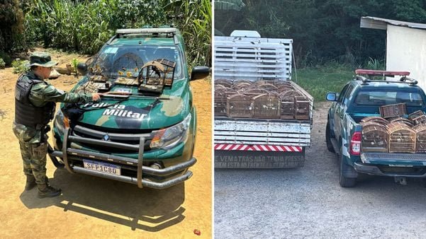 A Polícia Militar Ambiental apreendeu armas e pássaros silvestres em cativeiro, alguns em risco de extinção, durante duas operações no Sul do Espírito Santo na segunda-feira (4/12). Uma das ações foi em Ibitirama. O responsável responderá por crimes ambientais.