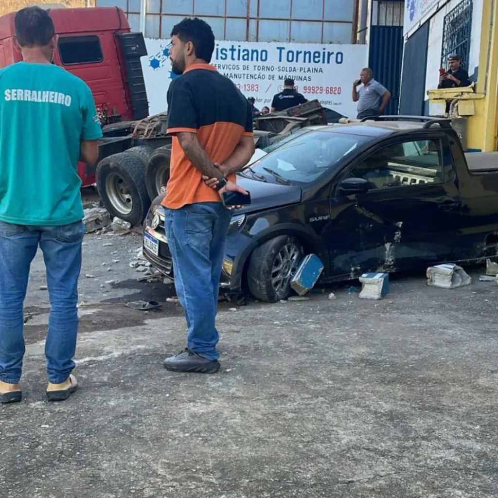 Caminhão desceu de ré no trecho da avenida Tancredo Neves e atingiu três carros estacionados na frente de um galpão. As primeiras informações apontam que não houve feridos graves, apesar do grande susto.