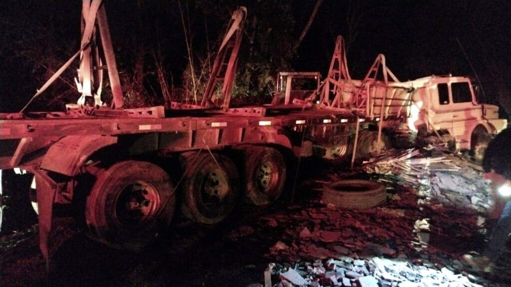 De acordo com a Polícia Militar Rodoviária, o motorista José Itamar Malacarne dirigia uma carreta Scania que tracionava um semi-reboque carregado com 98 placas de granito. Ele seguia pela pista em direção decrescente quando teve a visão ofuscada pelos faróis de um veículo em sentido contrário. O local estava em obras, e ao tentar evitar a colisão com uma máquina na via, perdeu o controle, saiu da pista e a carga tombou.