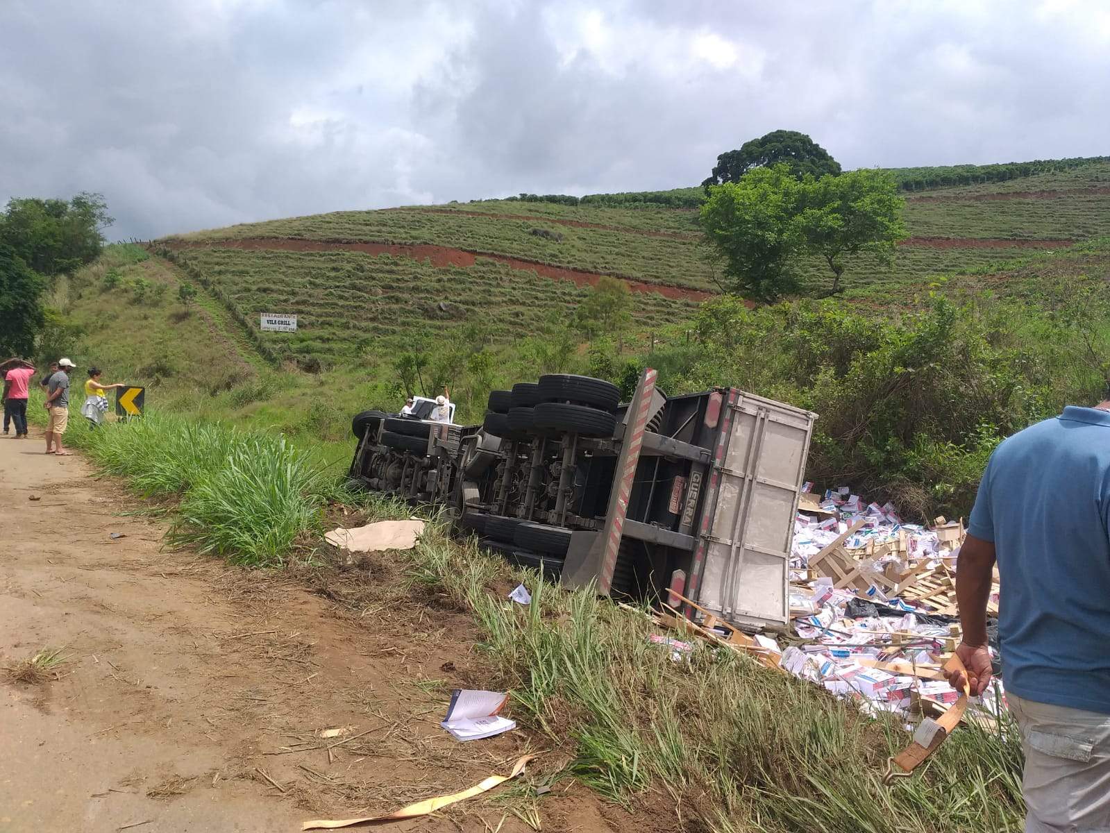 Uma carreta carregada com livros tombou no km 578 da BR 116, próximo a São Pedro do Avai, na manhã desta quarta-feira, 10/11.