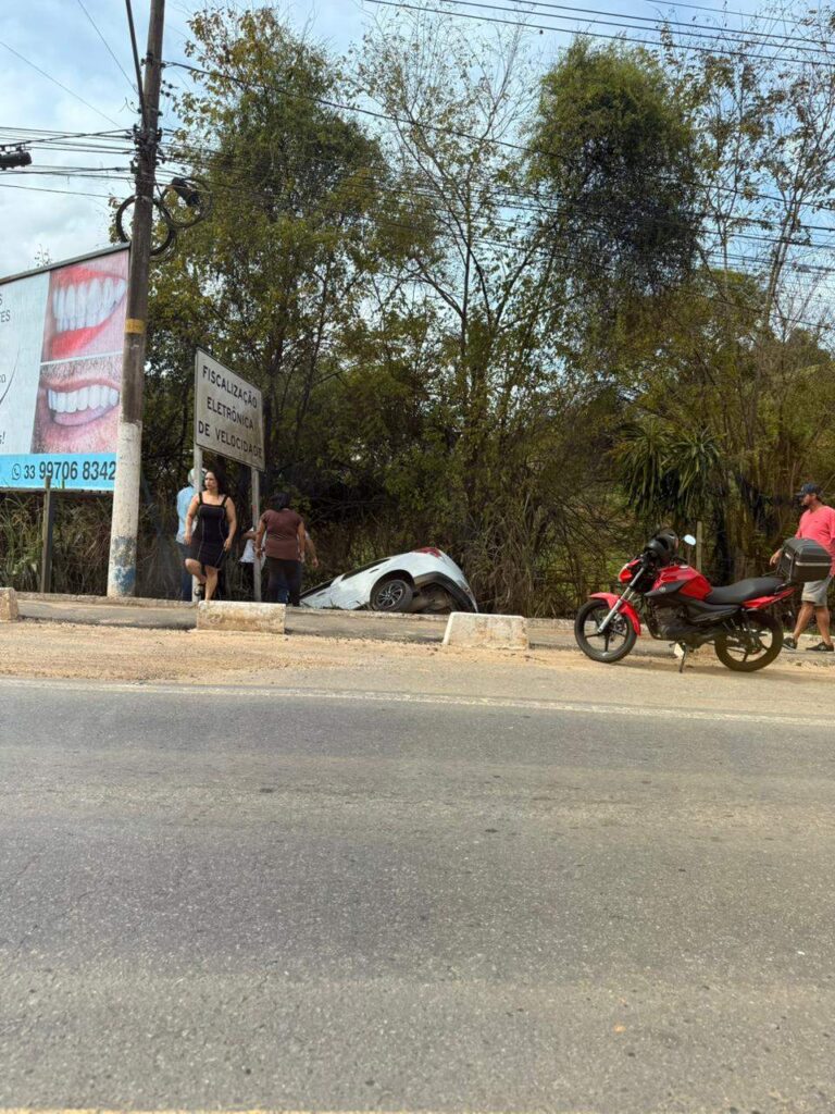 Um veículo saiu da pista e quase caiu no leito de um rio na tarde deste domingo (02/11), na altura do km 40 da BR-262, próximo à concessionária Nissan, no bairro Ponte da Aldeia, em Manhuaçu.