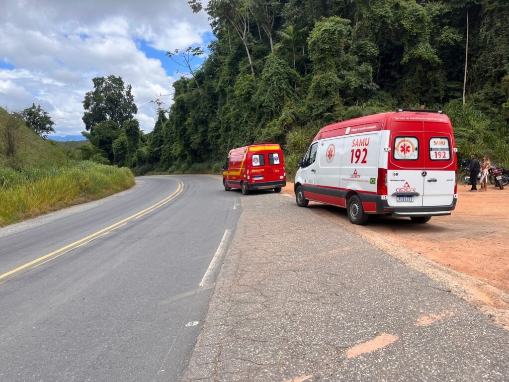 Ao chegar ao local, a equipe constatou que as duas vítimas estavam conscientes e orientadas. O condutor apresentava escoriações e um ferimento no joelho, permanecendo sentado às margens da rodovia. Já a passageira (garupa) também estava consciente, com escoriações, ferimento no tornozelo e suspeita de fratura em uma das pernas.