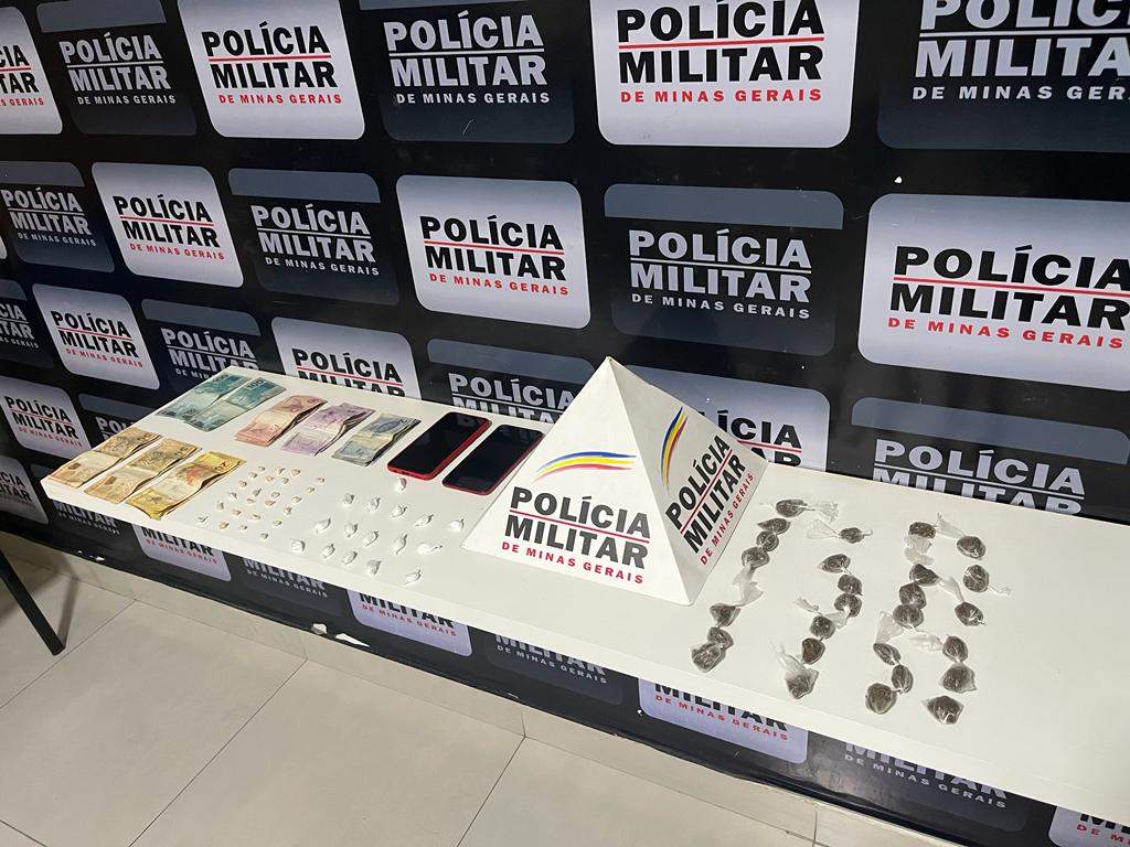 Na busca pessoal, foram localizados R$ 697,00 e, na bolsa dispensada, foram localizados 24 pedras de crack, 16 papelotes de cocaína e 27 buchas de maconha.