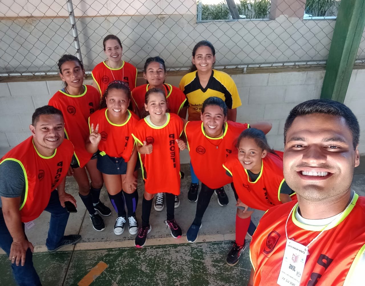 Mas há um grande diferencial nesta edição dos jogos: a participação da aluna surda Maria Clara Pereira, de 12 anos, que está cursando o 8° ano do Ensino Fundamental. Maria Clara está se destacando como goleira da equipe feminina de futsal módulo I e se comunica por meio da língua de sinais com o auxílio do intérprete Douglas Almeida, que também traduziu a abertura dos jogos..jpg)