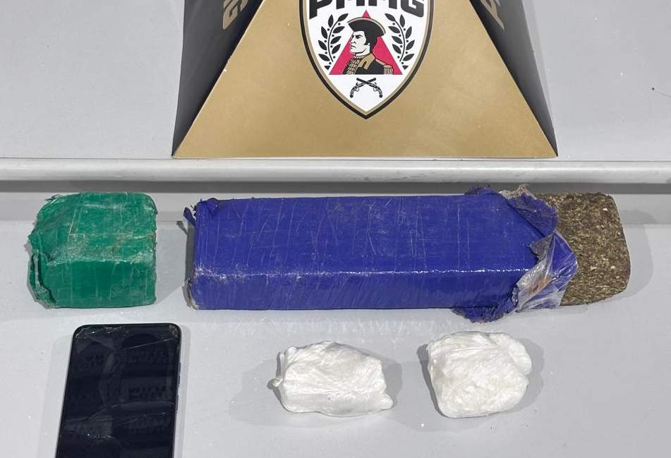Foram recolhidos dois tabletes grandes de maconha; duas porções grandes de cocaína; um veículo utilizado no transporte da droga; e um aparelho celular.