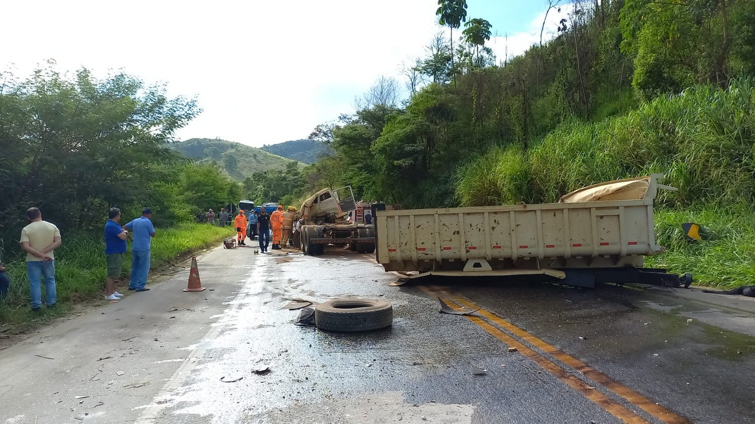 No impacto, a carga de um dos veículos se espalhou pela pista que também ficou escorregadia devido ao vazamento de óleo. As medidas necessárias foram adotadas.