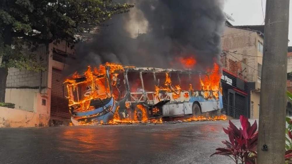 Um ônibus do transporte municipal pegou fogo de forma espontânea na tarde deste sábado (9/11), em Ponte Nova. Imagens que circulam nas redes sociais mostram o veículo completamente em chamas.