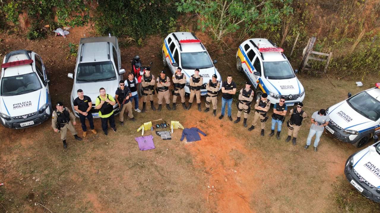 Ao chegarem ao local, os suspeitos empreenderam fuga, carregando consigo diversos materiais. Diante disso, foi necessário realizar um cerco e adentrar na mata. Durante as buscas, um dos indivíduos de 35 anos foi capturado e os seguintes materiais foram apreendidos: 14 barras grandes de maconha, 2 barras médias de maconha, 1 bucha grande de maconha, 39 tabletes médios de maconha, 3 tabletes grandes de maconha, 1 balança de precisão, 1 balança digital de gancho, 1 celular, 1 faca, 1 lima chata, 1 enxadão, 1 martelo e 2 veículos.