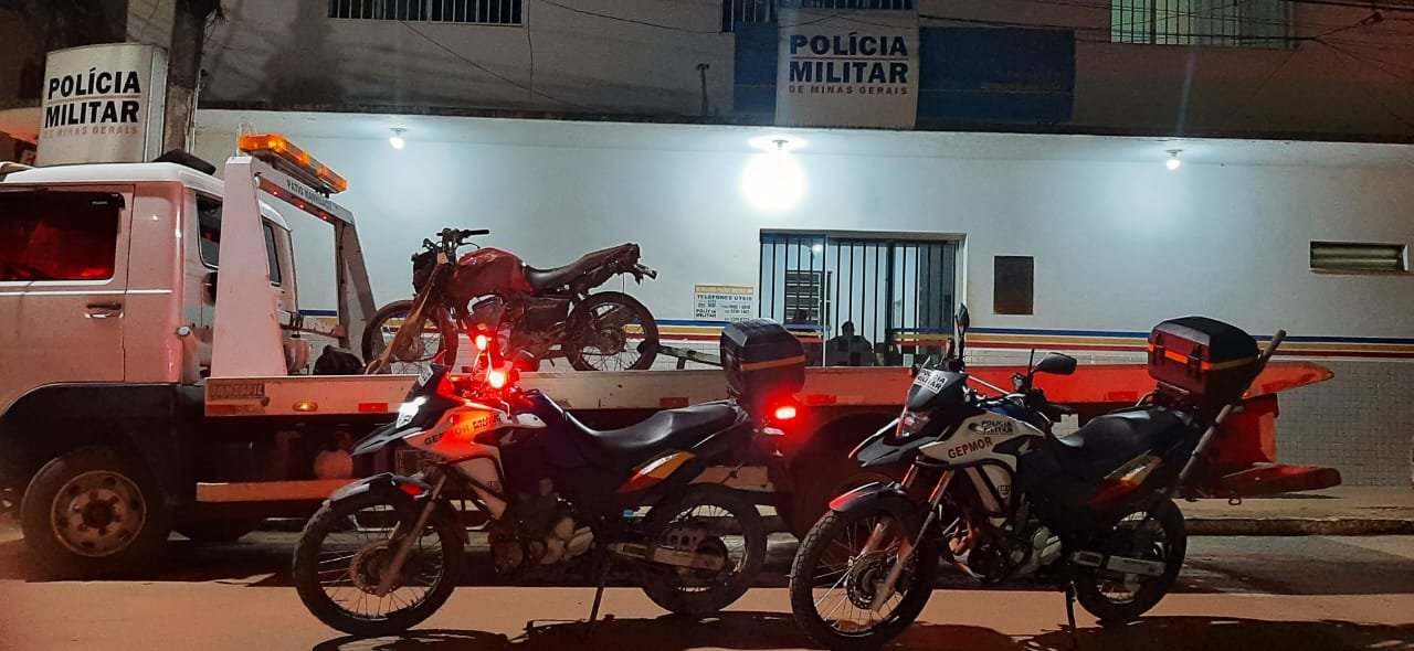 Neste domingo, 18, equipe policial durante operação no bairro Bom Sucesso visualizou uma motocicleta vermelha, com dois ocupantes, sendo conduzida com a placa de identificação dobrada.