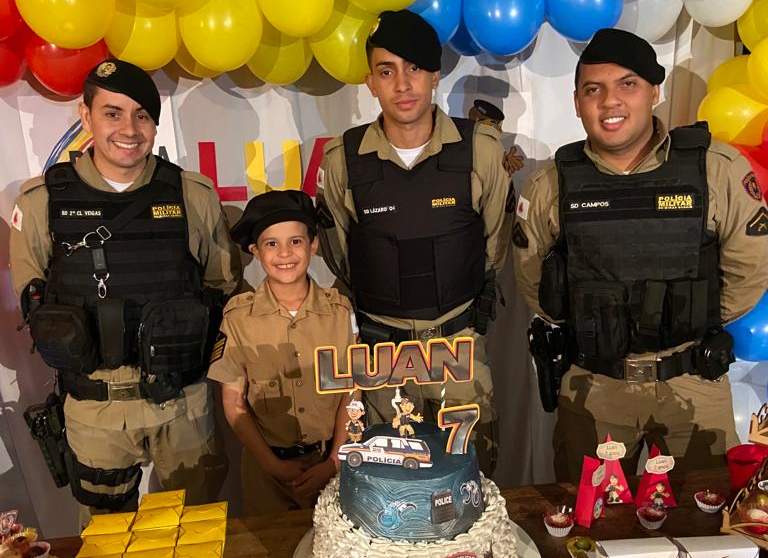 Eles participaram na quinta-feira, 08/06, do aniversário de sete anos do pequeno Luan. O garotinho é fã e sonha um dia servir na gloriosa Polícia Militar de Minas Gerais, instituição que completou 248 anos nesta sexta-feira.
