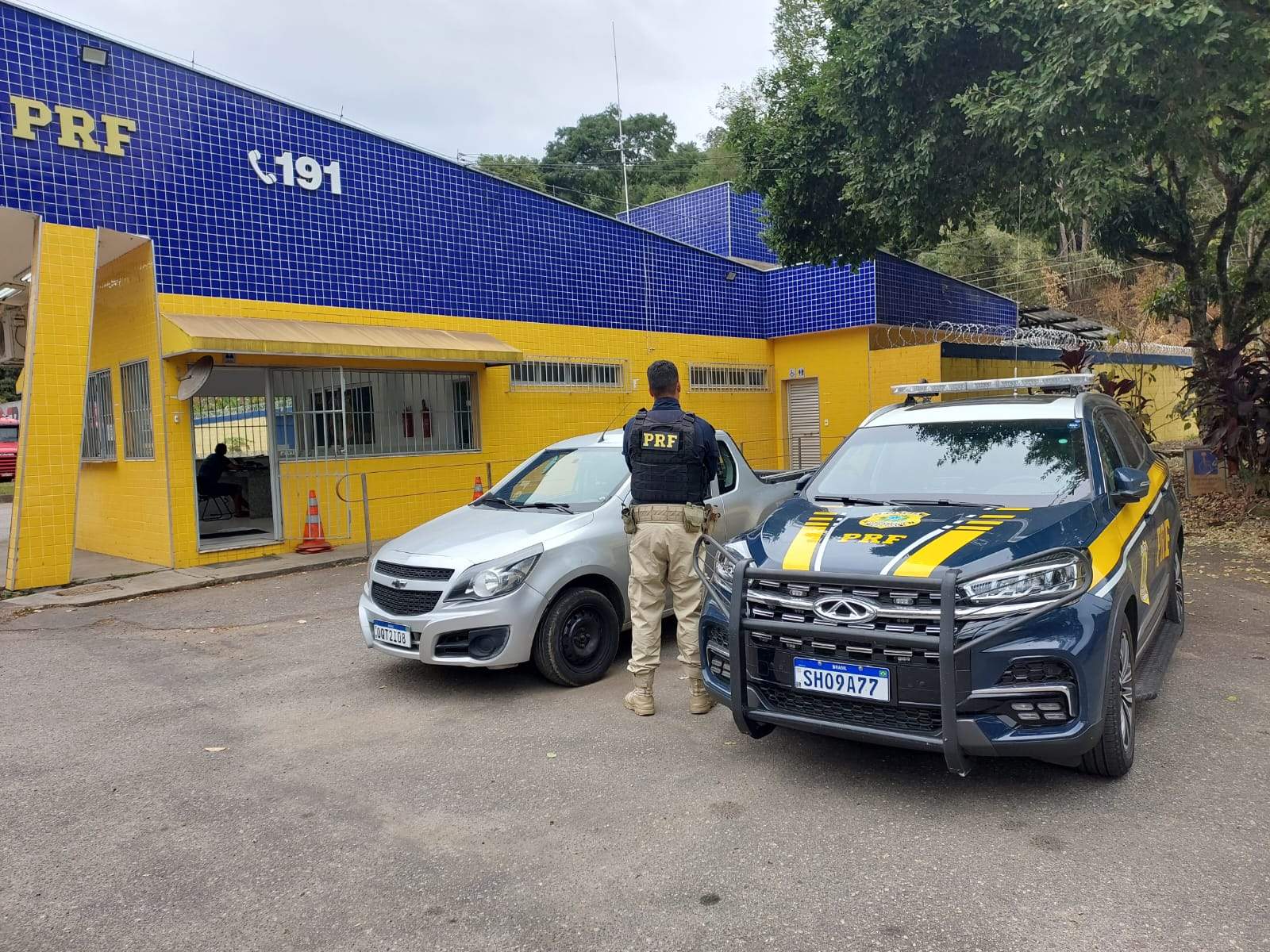 Foi identificado como placa original do veículo OPY7264, com registro de furto no município de Mangaratiba (RJ) no dia 13 de setembro de 2022. Questionado sobre a procedência do veículo, o condutor informou que comprou o veículo Chevrolet Montana em Nova Iguaçu (RJ) no dia 12 de julho de 2023 tendo realizado o pagamento através de permuta de um Fiat Siena.