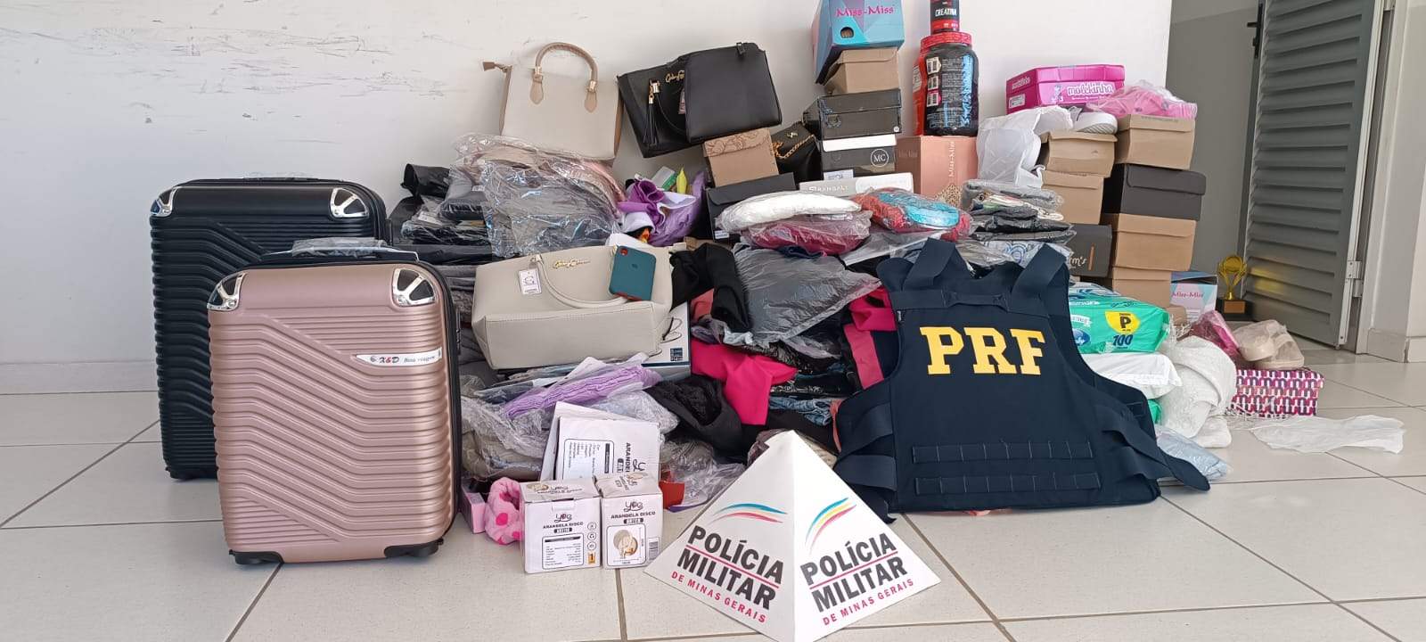 Foram apreendidos 35 pares de calçados, 50 peças de roupas diversas, oito bolsas femininas, duas malas de viagem e mais setenta itens relacionados, como roupas de cama e utensílios domésticos.