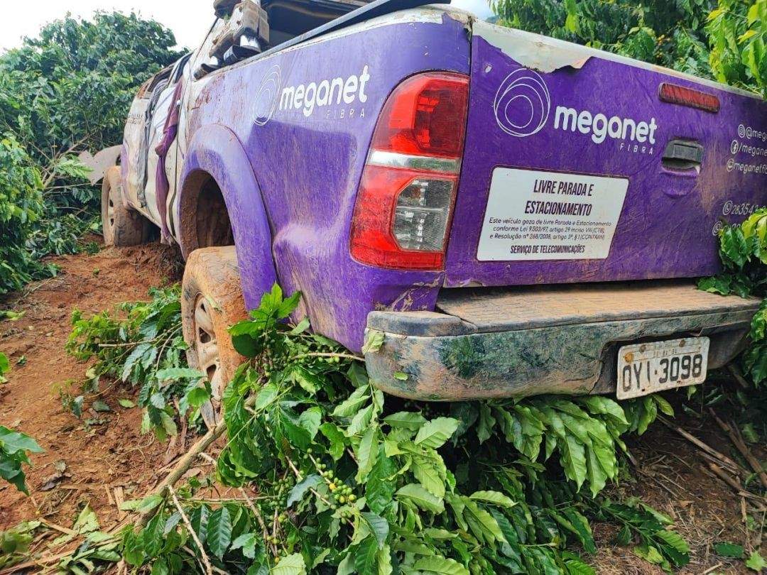 O veículo Hilux prata da Empresa Meganet, segundo moradores do local, capotou por aproximadamente 200 metros ribanceira abaixo em uma lavoura de café. Um dos ocupantes, um homem de 28 anos, já estava sendo atendido pelo SAMU no momento em que a Polícia Militar chegou e foi transferido para o Hospital São Lucas na cidade de Vitória.